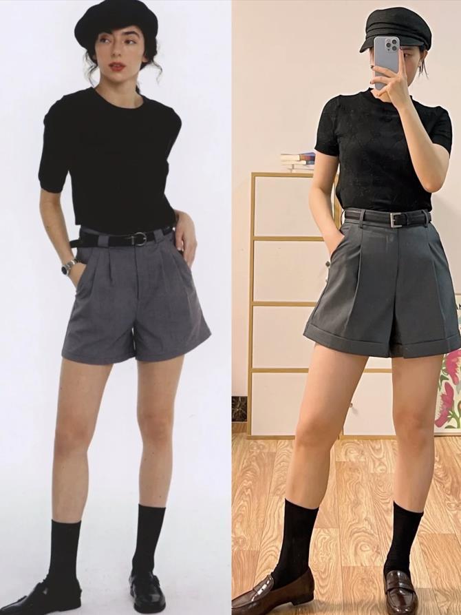 在顏色選擇上,樂福鞋和短褲也能進行多種搭配,比如深色樂福鞋與深色短褲搭配,就打造出一種低調又時髦的風格。