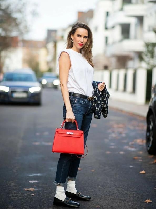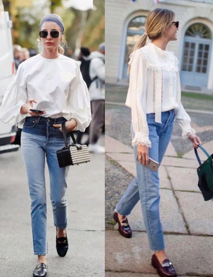 樂福鞋+牛仔褲,是一種很經典又不會過時的組合,無論是遊走在繁華的街頭,還是悠閒的鄉間小道,這種搭配都能帶給你一種很舒適的感覺。