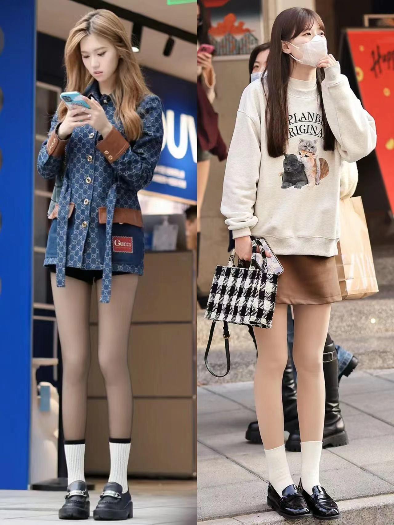 穿一雙厚底的樂福鞋,可以搭配高腰的短裙。想要文藝範的話,就配一雙白色中筒襪。白色中筒玩的修飾,可以顯得雙腿線條更加纖細,比例感更爲勻稱。