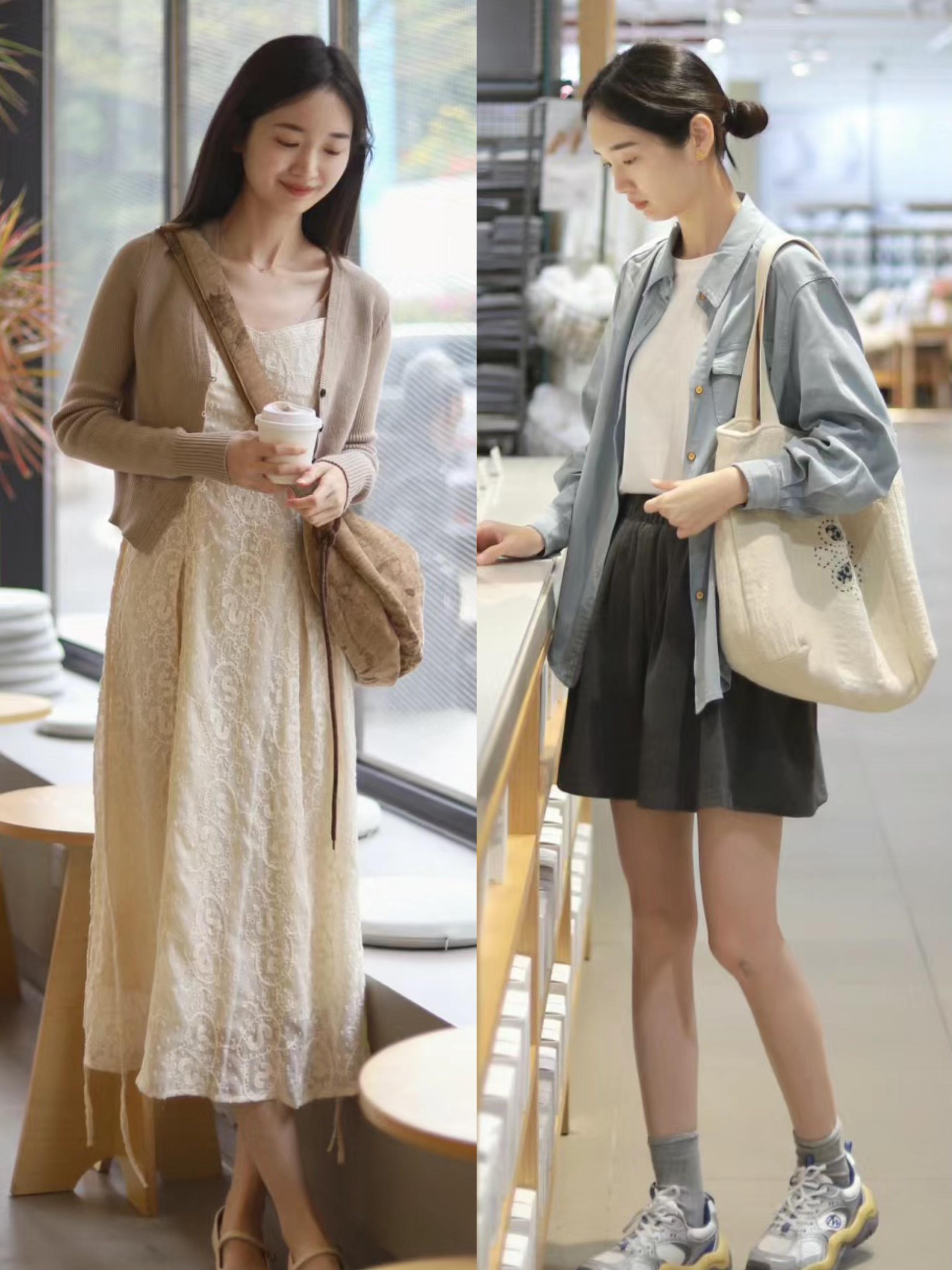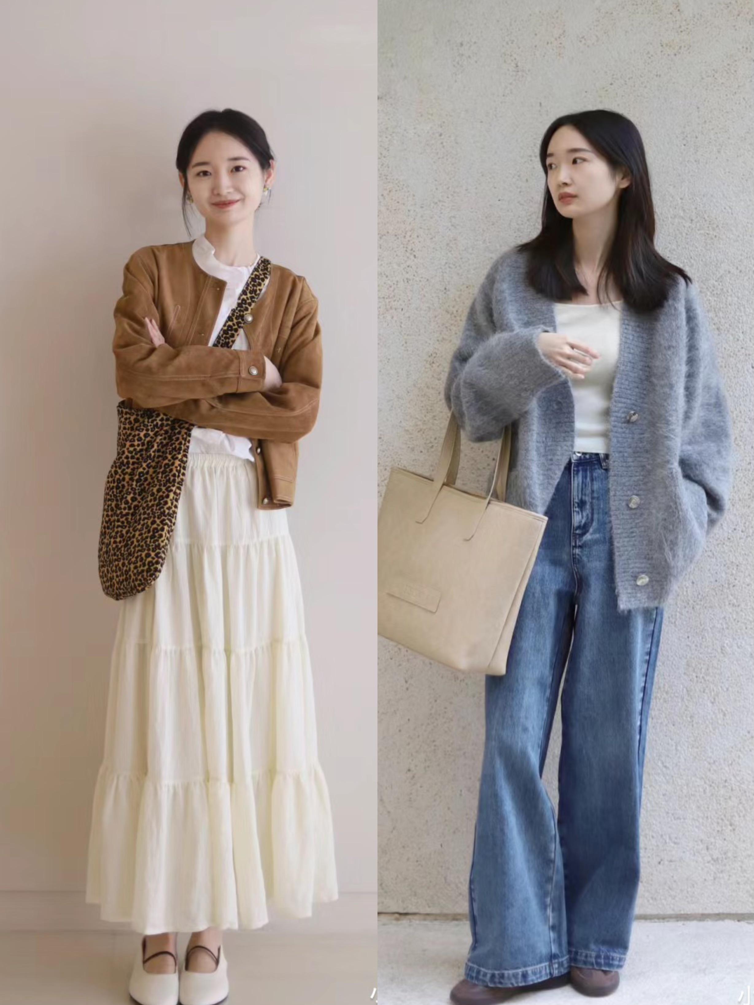 帶有少許文藝風格的穿搭,也比較適合氣質溫柔的女性。乾淨、素雅的搭配,基本上不挑人。我們可以穿針織開衫配經典的白色T恤,大方又耐看。