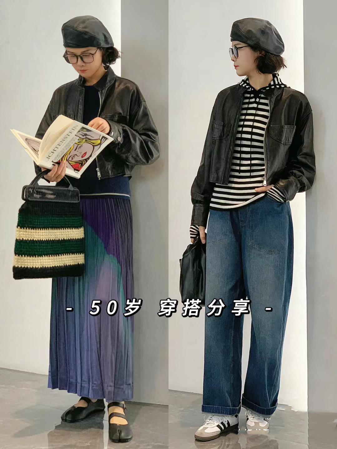 50+的年紀,依然可以精緻酷颯呀,穿上利落的短款小皮衣,搭一條寬鬆的直筒牛仔褲,你就是街頭最靚的仔!