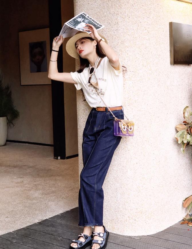 平底涼鞋可是夏季很受歡迎的鞋款之一,它們穿起來輕便舒適,且能夠與各種衣服相配,與牛仔褲的組合也是非常經典的。可以選擇一條直筒版型的牛仔褲,加上一件白色t恤,這樣既舒適又時尚。