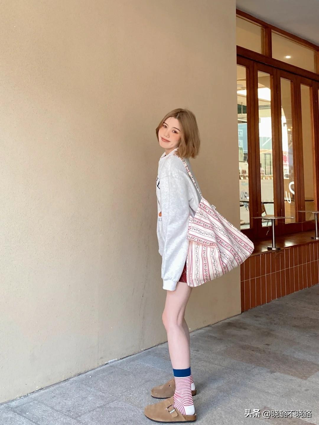 具體的操作方法有增加衛衣的領口,用展露一側肩膀的方式,提高造型吸睛點的位置,進一步轉移焦點,進而爲一些腿型不夠修長筆直的姐妹傳達更多顯瘦效果。