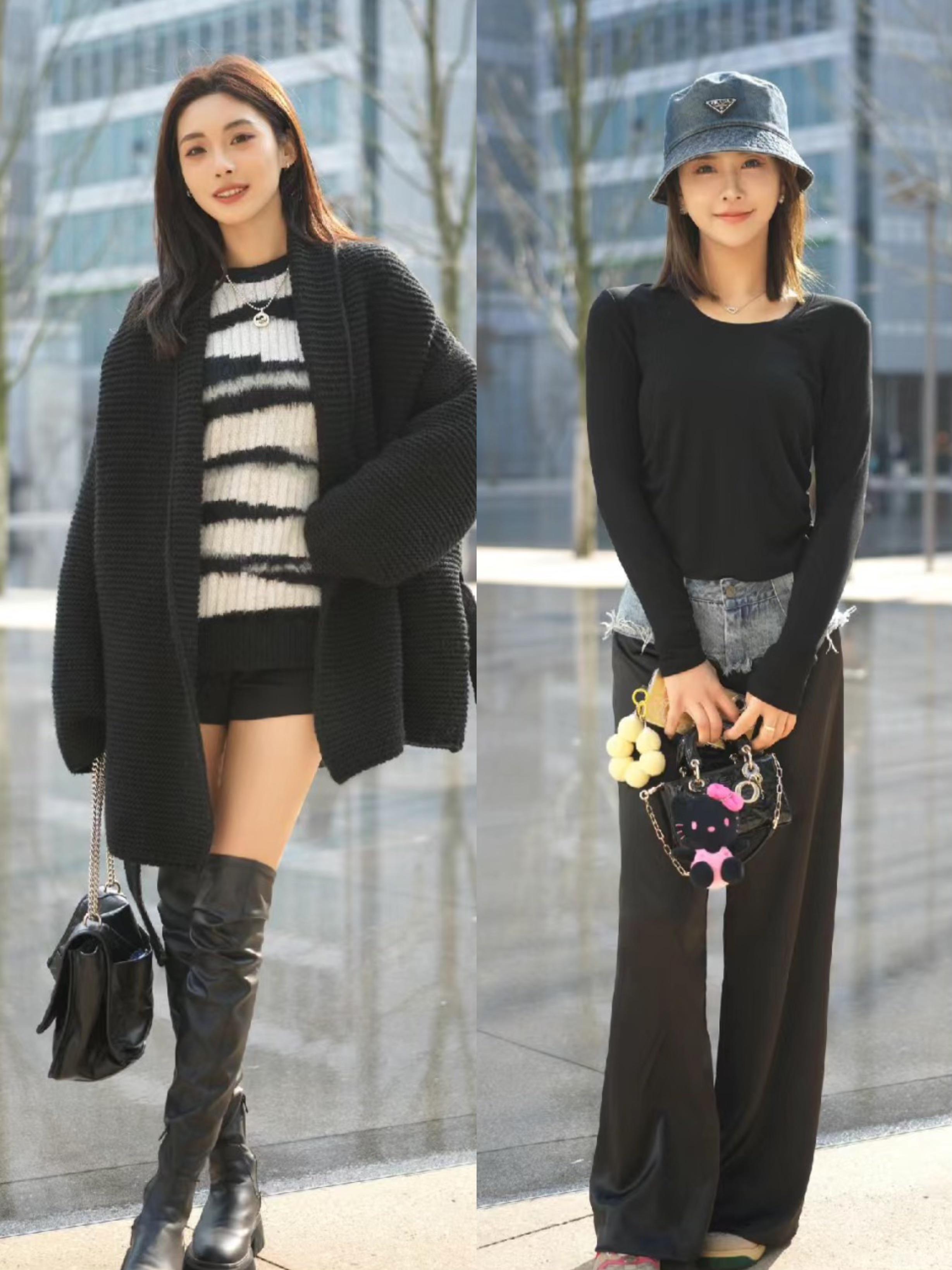 短款的衛衣、短款的針織衫,在杭州街拍中也是比較常見的。相對於小香風外套的精緻、西服外套的酷颯,衛衣更加休閒活潑、針織衫更加溫柔甜美。