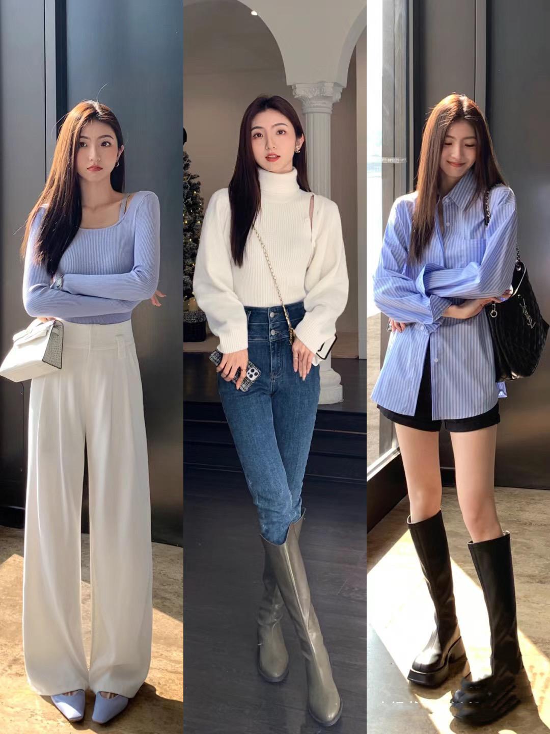 藍白配色的溫柔與乾淨、澄澈與輕靈,真的是讓人莫名喜歡。淺藍色的針織衫,上身後滿眼都是溫柔,搭配白色褲子乾淨大方還顯腿長。