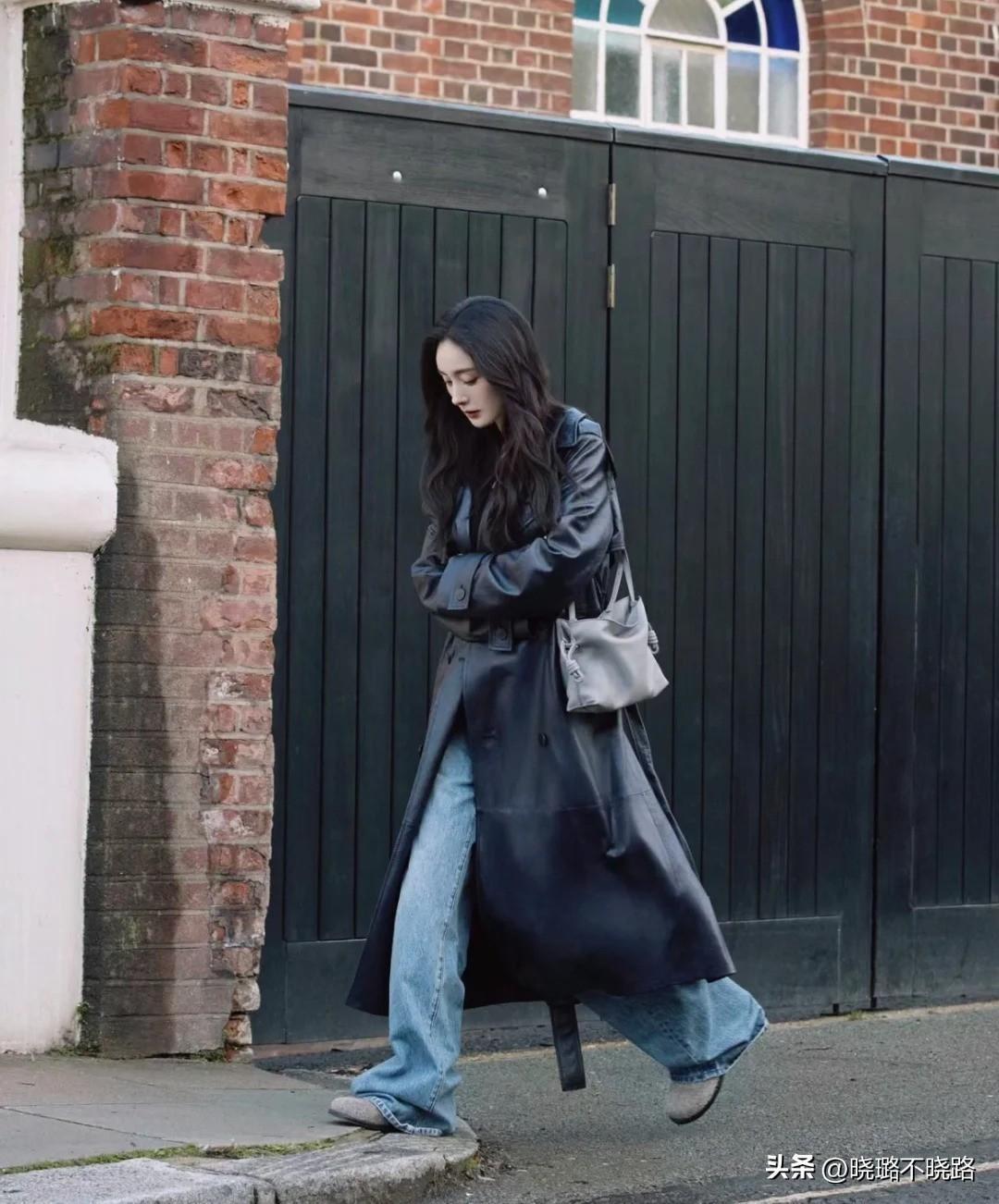 當然這種拖地的表現形式不僅僅侷限在牛仔系列中,西裝褲也可以進行相應的嘗試。但需要注重的一點是,西裝褲搭配風衣主打一個極簡和率性,因此具體單品配合的過程裏建議增加一雙鞋頭比較尖的高跟鞋,進行設計感的打造,避免出現造型過分嚴肅不夠吸睛的問題。