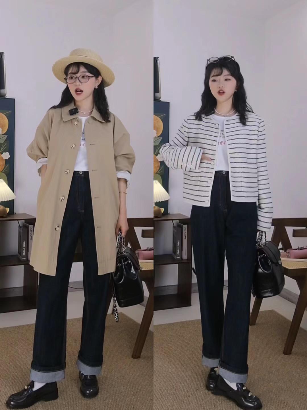 天氣有點微涼的時候,我們可以用白色T恤來疊搭小香風外套或者風衣外套,下身配卷邊的直筒牛仔褲,搭一雙厚底樂福鞋,就利落顯高。白色T恤的搭配,擁有着無限的可能。