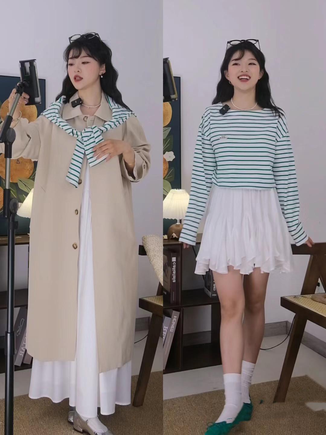 小個子的春天,可以文藝可以復古,擁有着多種可能。經典的條紋打底衫,選擇了綠白撞色、也泛着春天的生機、活力感十足。