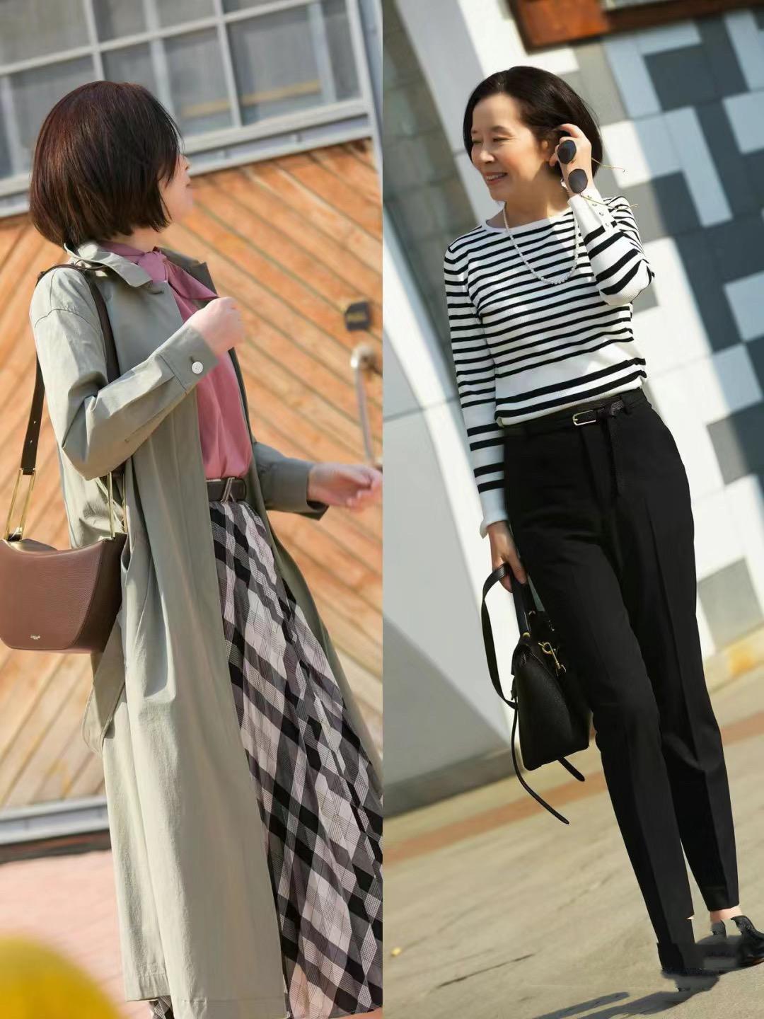 素雅、低調、高級又顯氣質的搭配,誰能不喜歡呢?50+的年紀,依然可以優雅大方。經典的黑白條紋打底衫,修身的版型穿起來格外的顯瘦。