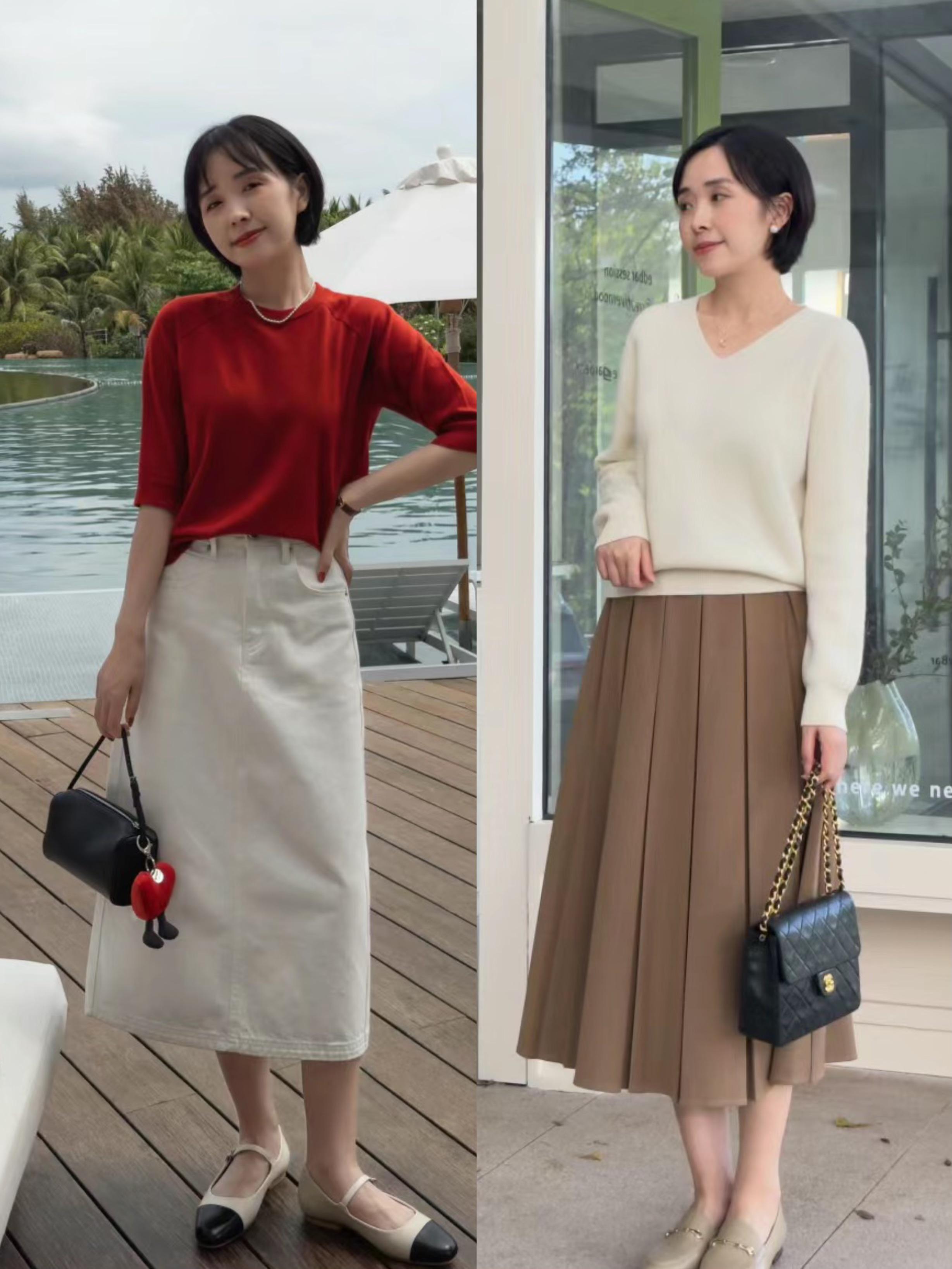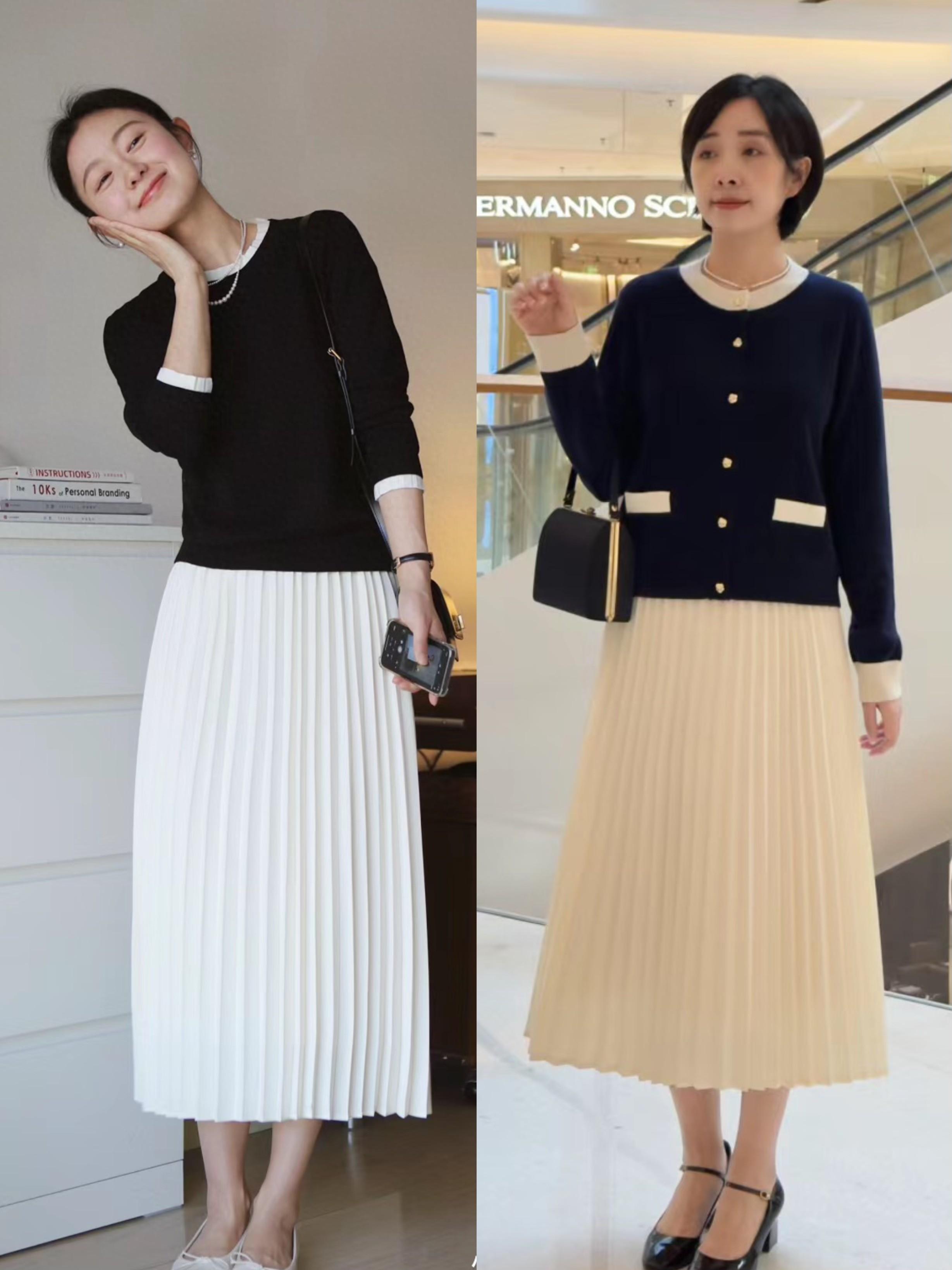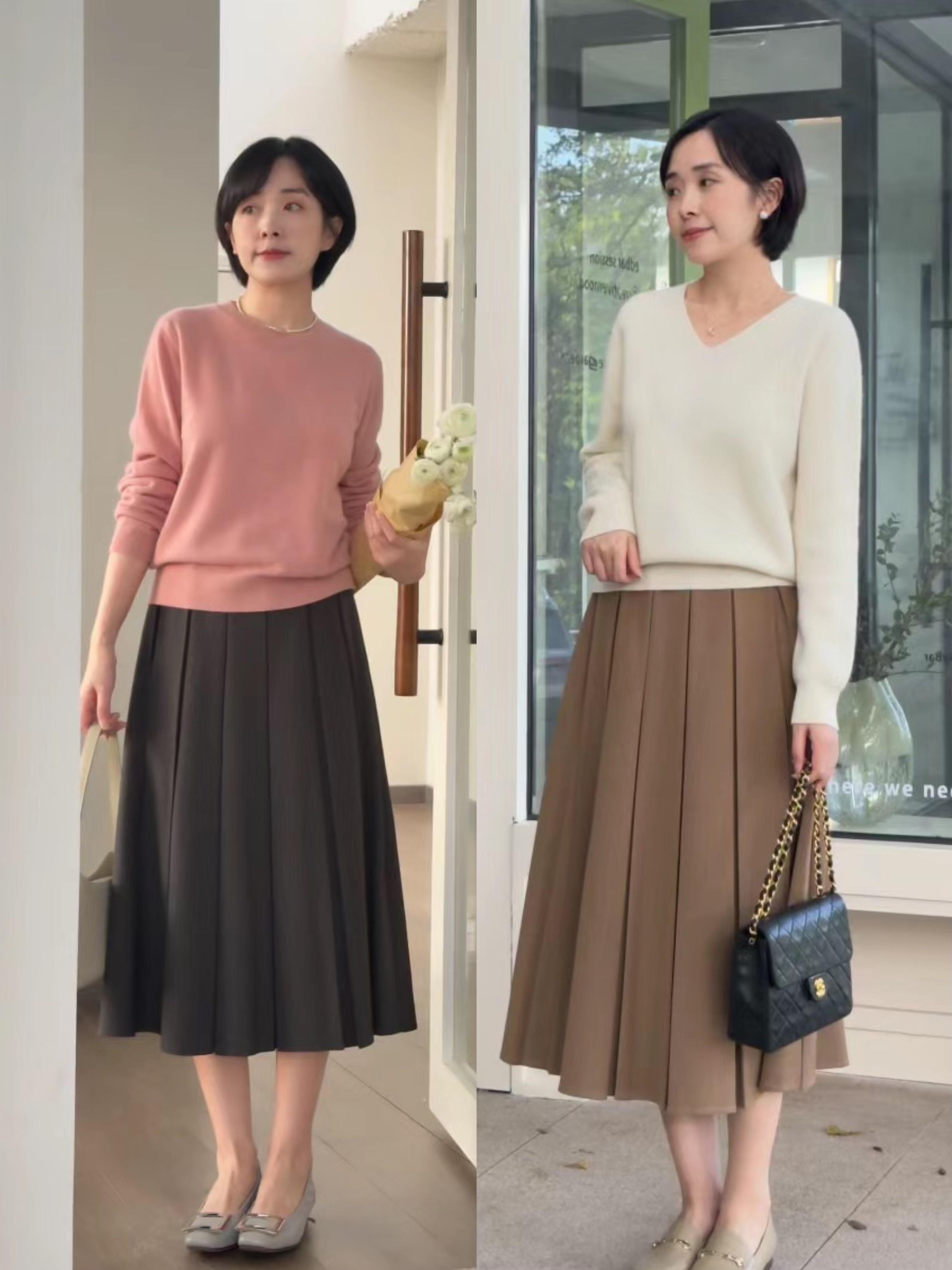 比如寬鬆的針織衫,比較細膩的面料配上V形領口的剪裁、加上收腰的設計,就利落又輕盈。百褶的半身裙,是一種立體的壓褶設計,特別的顯瘦耐看、時髦度也在線。