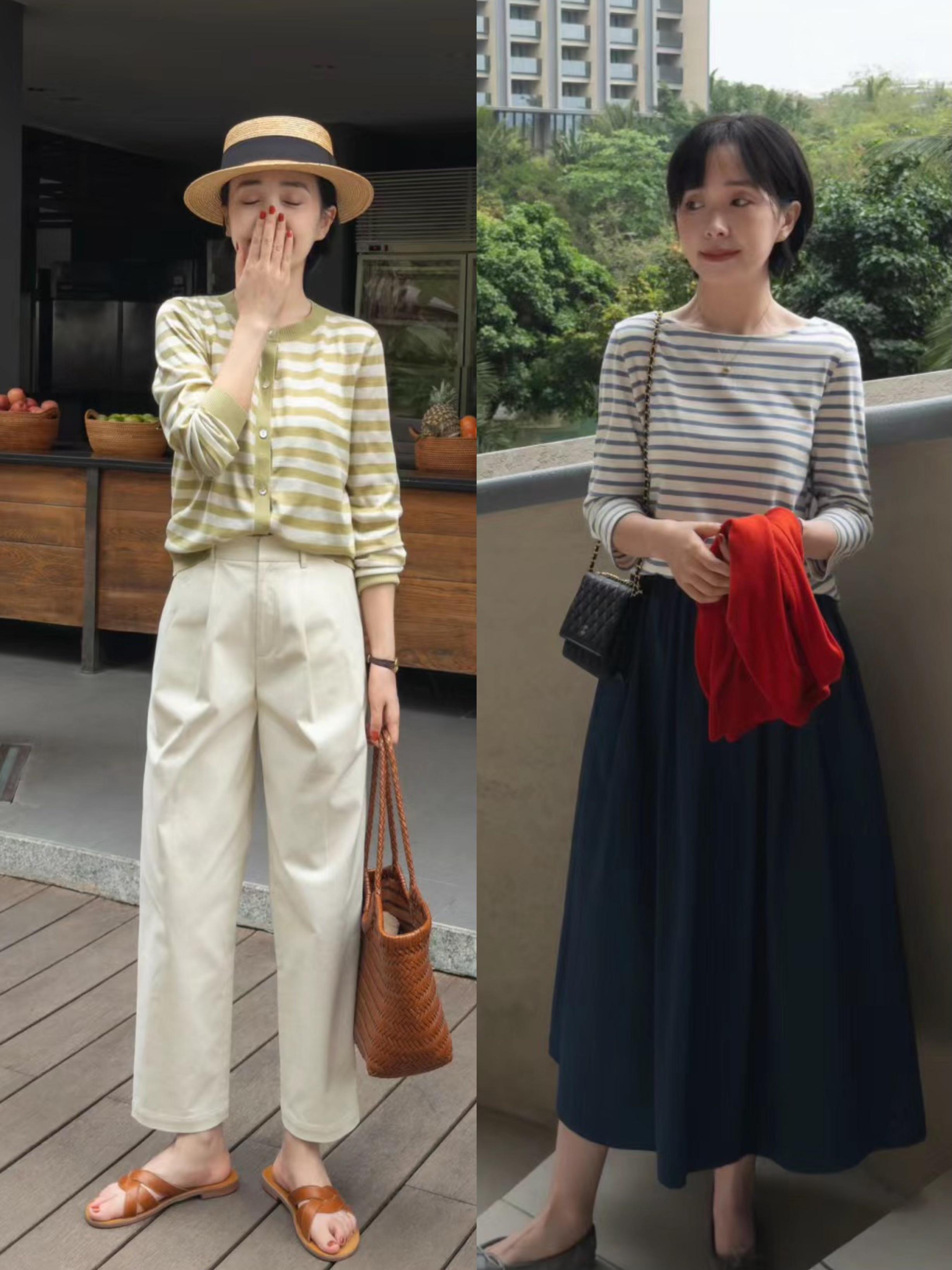 春天裏的海魂衫,真的是很減齡呀。40+的年紀,想要削弱年齡感的話,可以選擇一件色彩清爽的海魂衫,不僅減齡還拉滿了春日氛圍。