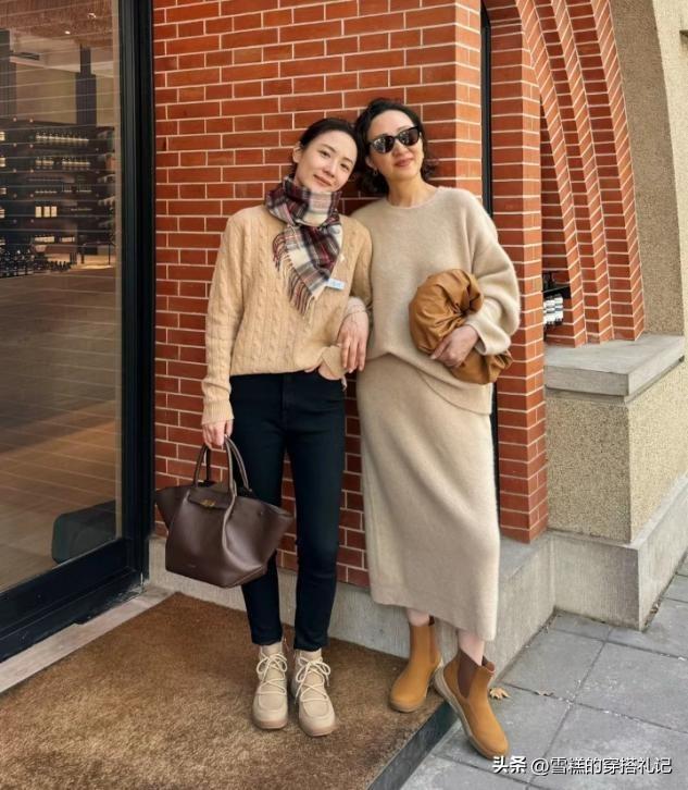 我們以色彩的精緻組合作爲推薦,會發現三木母女的造型穿搭或多或少都會存在着兩種顏色的對比效果,而且一般會以一種經典的色彩作爲主角,可以是卡其色,也可以是灰色,顏色的過渡感,讓你的穿衣配色更加高級。