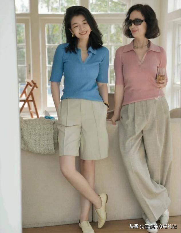 我們永遠都不應該忽略基礎款的魅力。早春特別喜歡穿搭的基礎款,肯定少不了針織衫,這是一種POLO衫款式的針織上衣,擁有超強的彈力面料特質,像三木母女這樣去搭配西裝褲或者是五分褲裝,都可以很從容的展示出一種隨性的老錢風格。