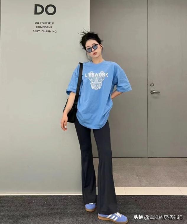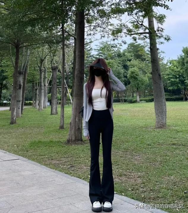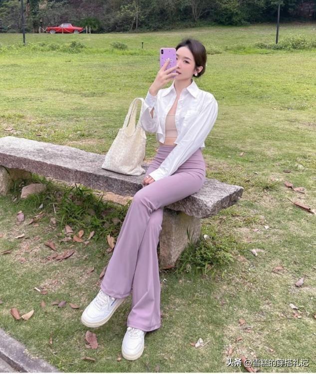 偏瘦體型的女生,對於凹凸線條的追求,最爲渴望,那麼我們可以嘗試從彩色系的酒杯褲進行入手,淡一些的飽和度可以放大腿型線條的飽滿程度,不會讓你的身材看起來太過於乾瘦,用來組合運動鞋就能彰顯好身材。