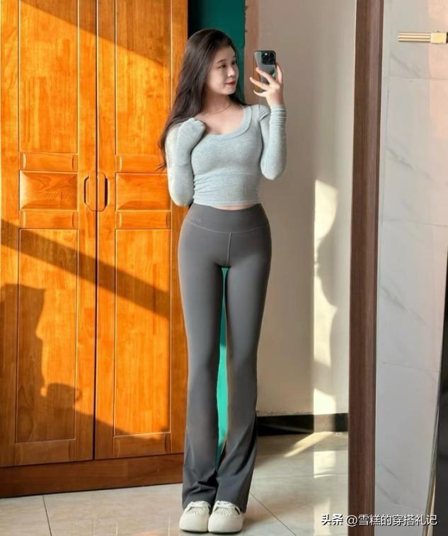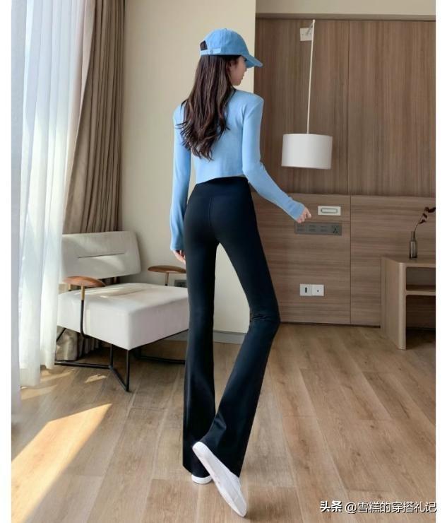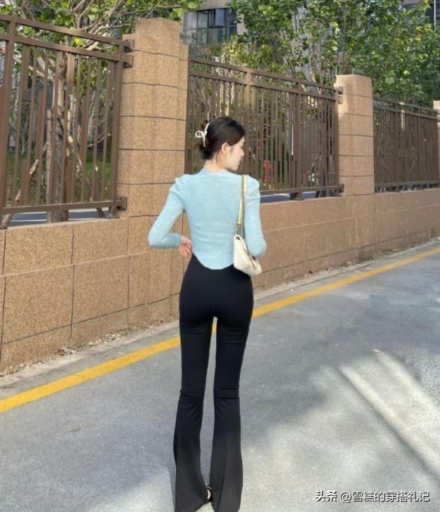 酒杯褲還擁有很多小個子女生,非常愛的細節設計,那就是高腰線條的放置,這種褲子的襠部位置做的很長,可以幫助我們收容高腰曲線,展示出最完整的臀部線條,很大程度上拉長了你的腿部曲線,輕輕鬆鬆就能夠達到顯高顯瘦的效果。