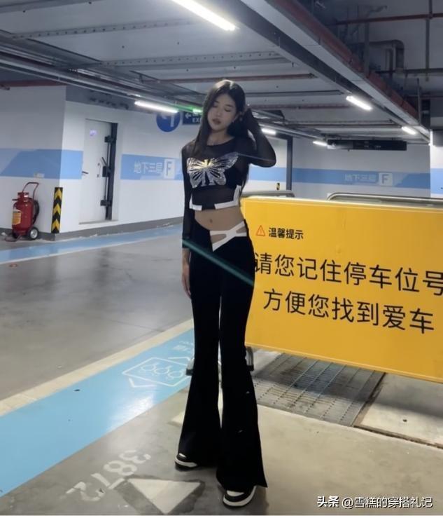 酒杯褲能夠出類拔萃,很大程度上還和褲子本身的版型特點有關,這種褲子的線條走向很像喇叭褲,但是因爲面料超薄,超有彈力,所以臀部有明顯收緊的特點,腰臀對比線條很明顯,小腿部分放鬆更容易收容肥胖肉感,寬窄比例拉扯相當到位。
