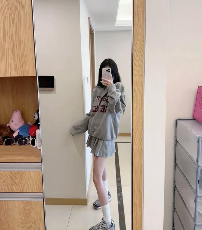 寬鬆的衛衣款式,與百褶半裙形成完美對比,既展現出女性的柔美,還不失休閒隨性感,簡潔大氣的衛衣,與百褶裙相互映襯,能彰顯出獨特的魅力。