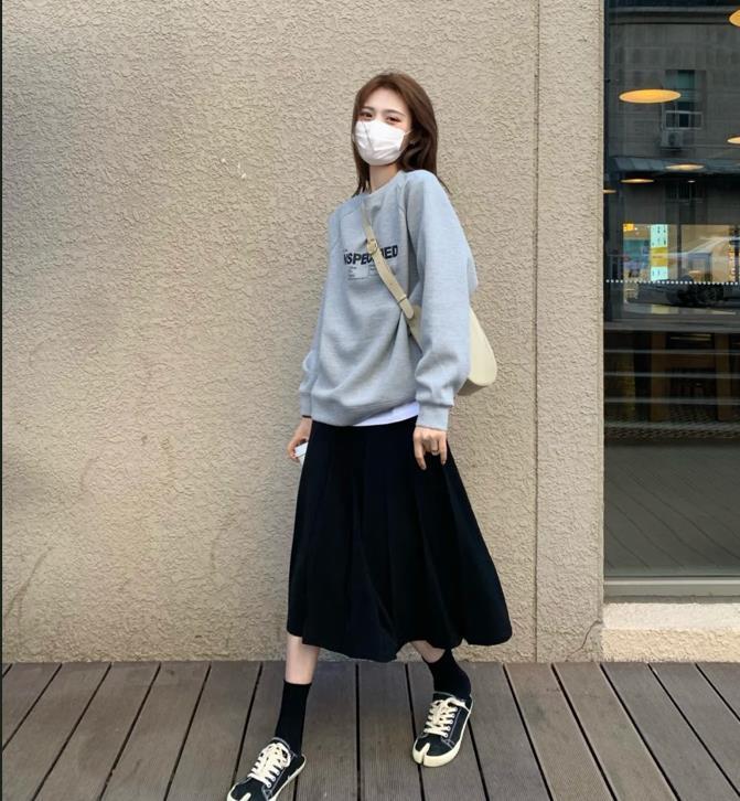 不管是套頭衛衣,還是連帽的,都自帶一種青春活力感,與半身a字裙相配,能很好展現出女性的柔美。還能遮掩起身上的缺點與不足,這種搭配適合各種場合,無論是休閒逛街,還是約會通勤,都很不錯。