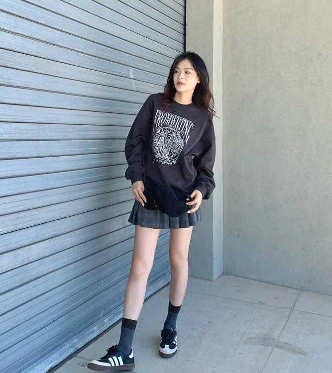 喜歡穿衛衣的姐妹,一定要試試與a字裙的穿搭,既可以保留衛衣的休閒感,又能增加女性的優雅氣息,這種搭配方式可是很適合日常搭配的,約會逛街都ok。