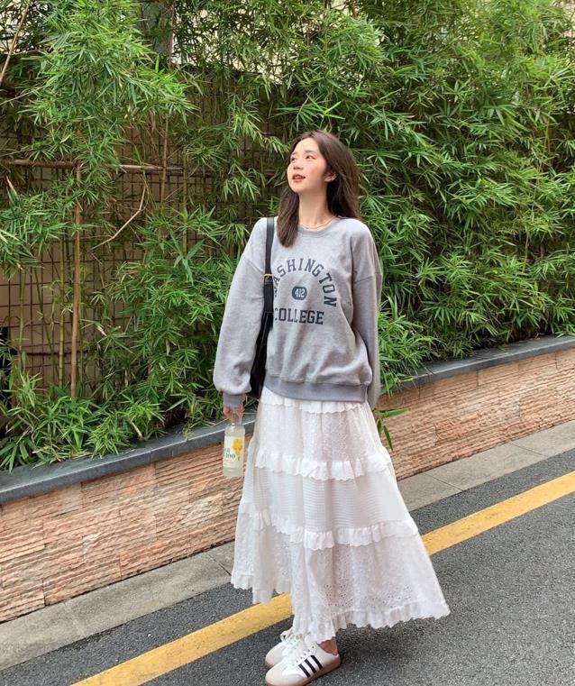 衛衣搭配a字半裙,是每年春季都很流行的穿法,這種搭配不僅能夠展現出時尚感,還不失休閒舒適,深受衆多小年輕們的喜歡。