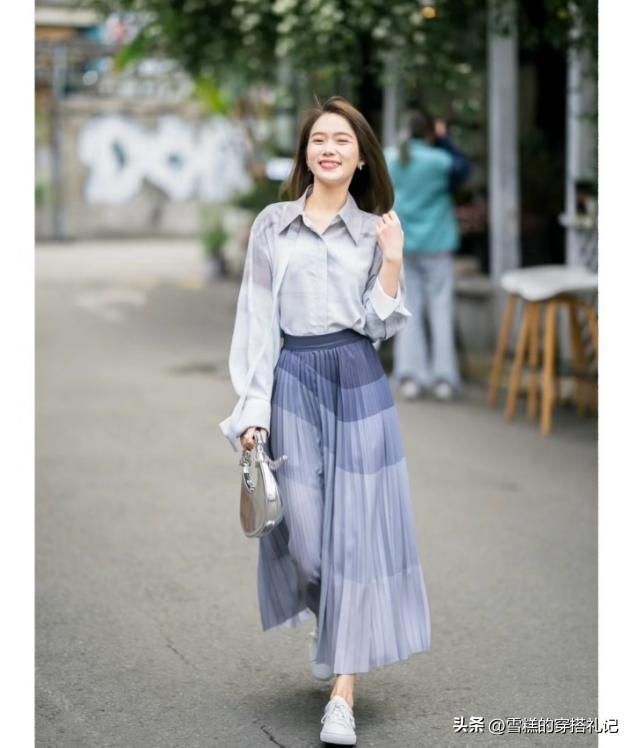小個子女生對於長裙的最終穿搭效果飄逸,裙襬掌握了造型的輕盈感,所以雪紡、棉麻或者是蠶絲的面料都可以作爲優選,更符合春季打扮優雅感。