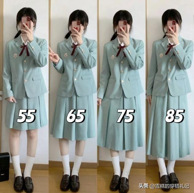 日常市面上最流行的裙子長度基本上都是圖中展示的這四種,但是對於個子不超過160的女生來說,我們需要讓腿長佔比超過裙長佔比,最終達到身高佔比的7/10,把握了這些數據的相互對比,才能夠很從容的去延長你身材的縱向曲線。