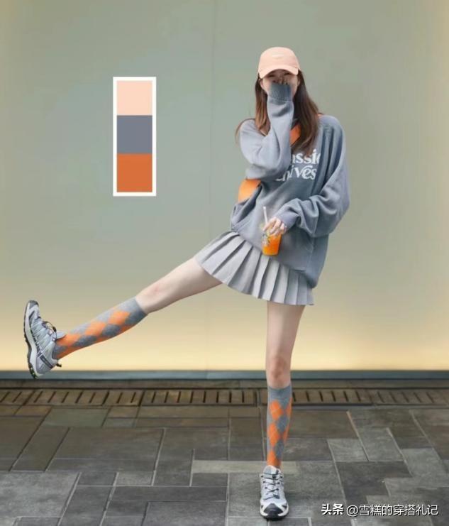 >>>帽子和短襪的配色可以達到視覺的提亮效果