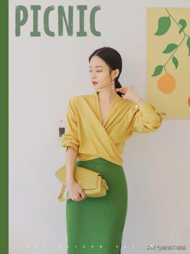 不同的色彩給人不同的感覺,互相搭配起來可以凸顯出內涵與品味,更展現了女生們自信從容的氣質。因此,上下選擇不同的配色,例如黃色或棕色搭配綠色,不僅能夠塑造出修長纖細的線條,還能營造出穩重大氣的整體形象。但是要注意過渡效果,不能給人雜亂和張揚的感覺。
