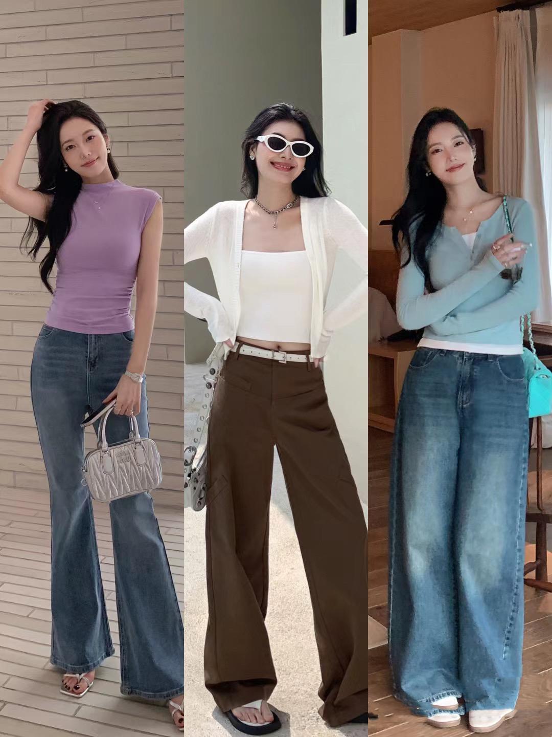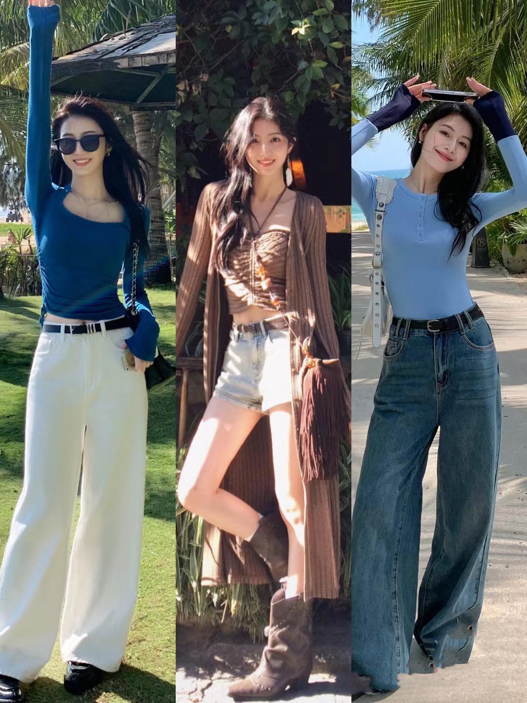 修身的打底衫,孔雀藍的顏色顯白又提氣質。我們直接搭配白色直筒褲,高腰的白色直筒牛仔褲,穿起來版型挺闊、顯得雙腿修長,氣質更高級。