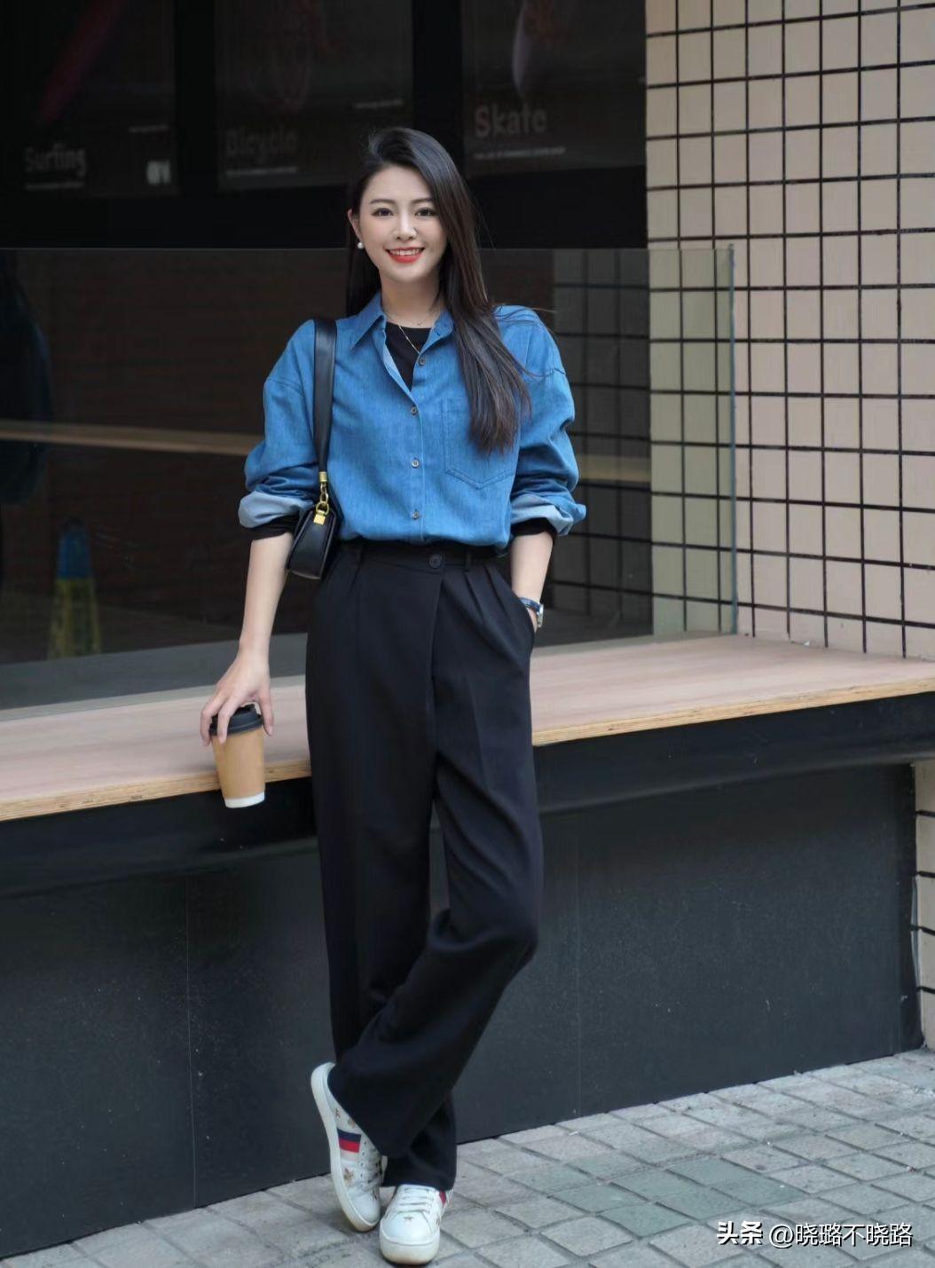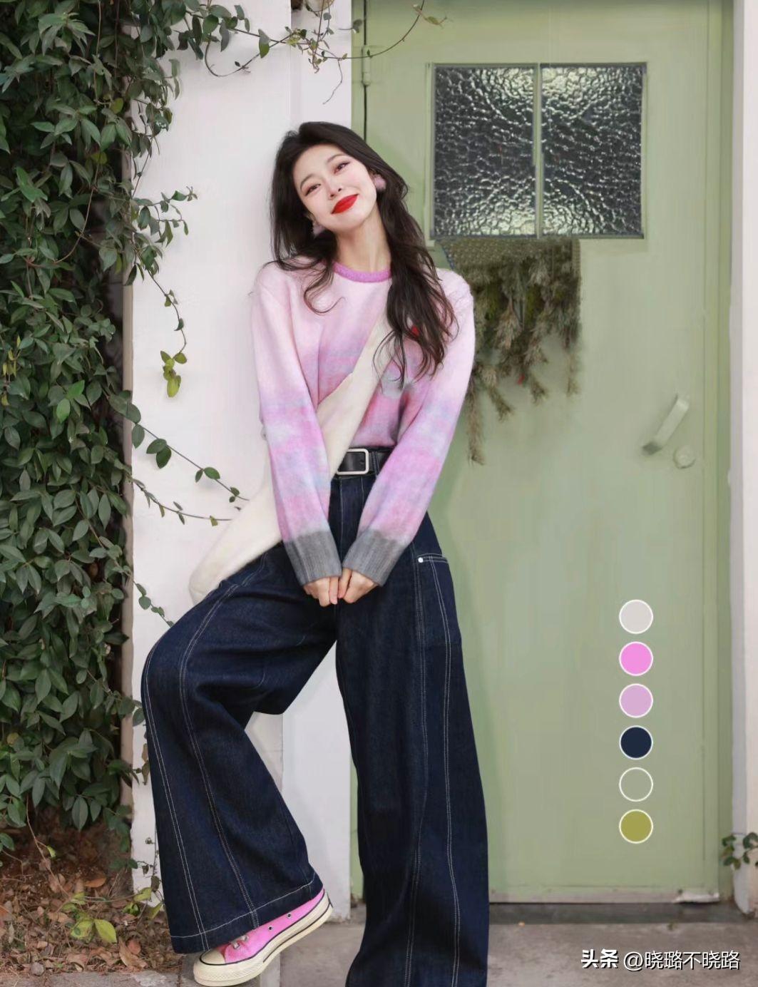 那麼闊腿褲在色系這一個選項當中,當然也可以偏向於更加基礎百搭的類型,例如像絕對不挑人的黑色或者是灰色以及很經典的牛仔色都是可以的,搭配起來的時候,對於我們腿型的狀態都有着一定的橫向顯瘦感。