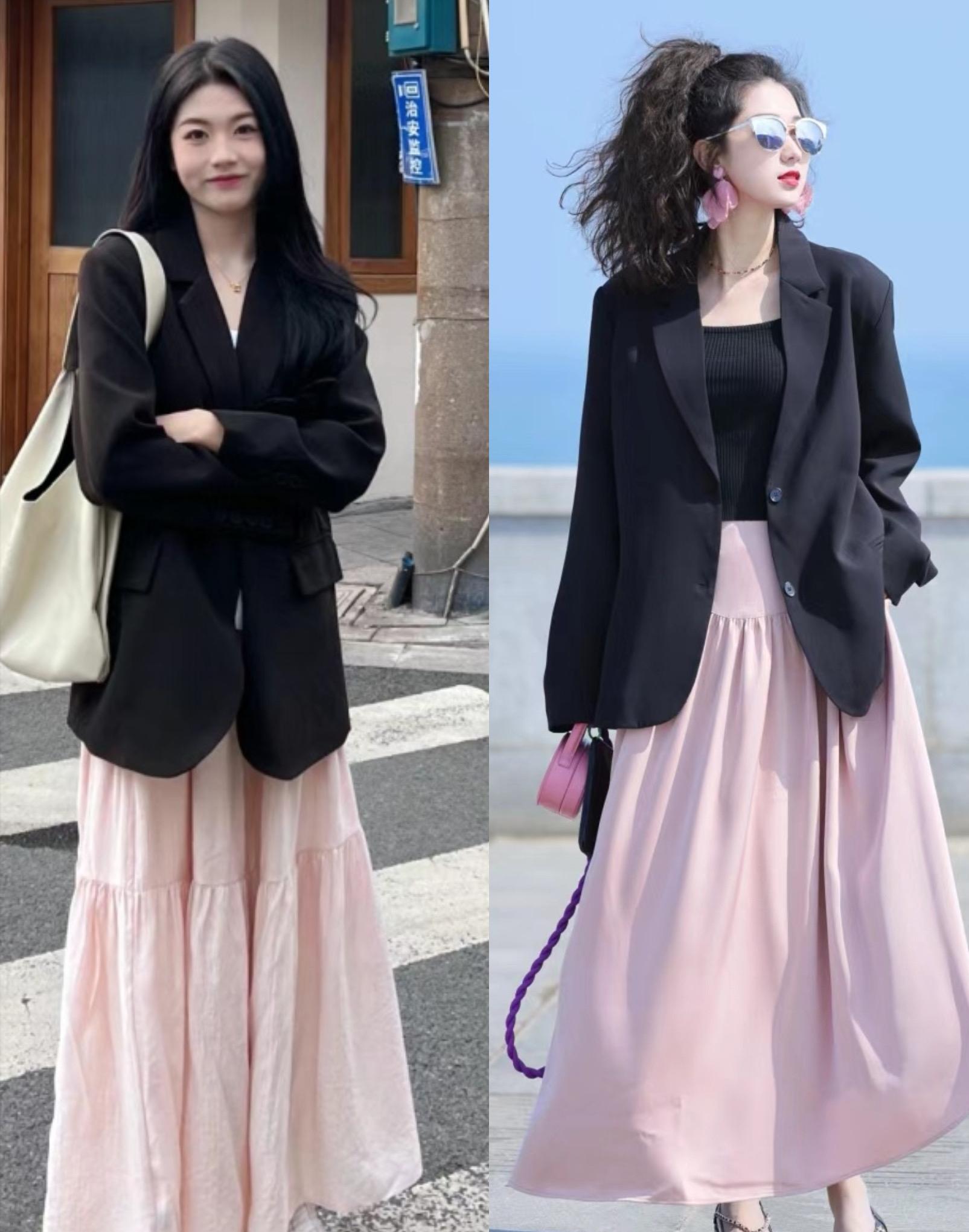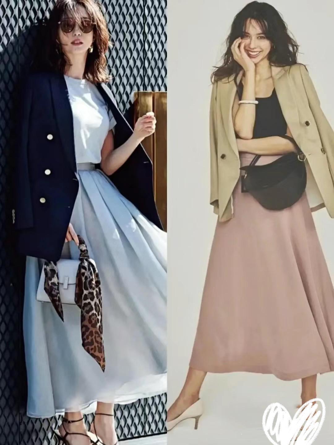 春天流行一種穿搭,叫做“西裝+半身裙”,優雅高級、美到骨子裏