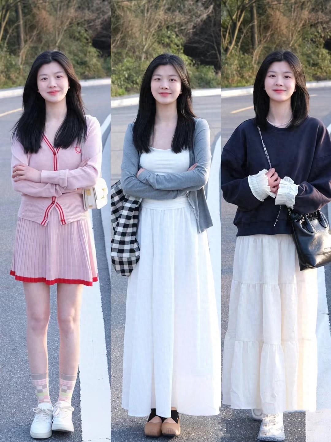 不管是針織套裙、還是針織衫配、基礎款衛衣來搭配白色半身裙,都同樣的溫和優雅。如果想要秀長腿,就選擇短款的針織套裙。如果想要更具包容性的組合,就搭配及踝的白色半身裙吧。