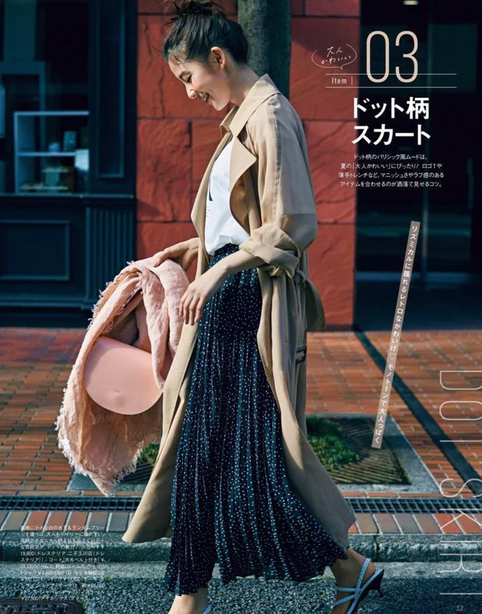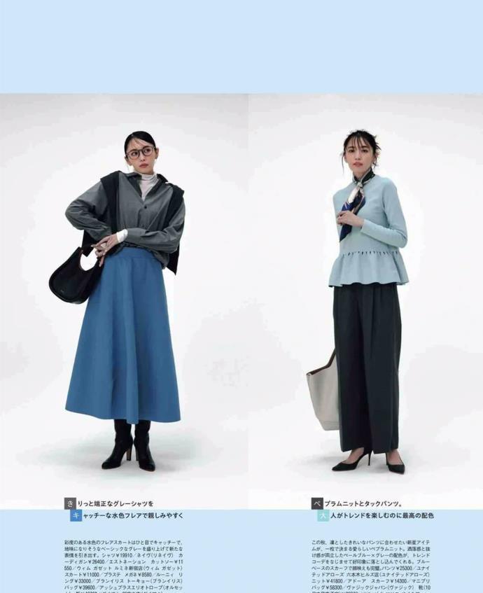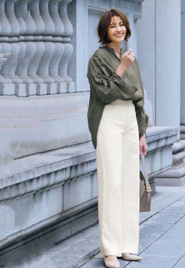 ②下裝:關於下裝的挑選,建議入手直筒褲,或者是a字版型的裙子款式,不得不說這些款式的下裝對身材都具有很好包容性。修飾身材又顯瘦,同時,選擇高腰設計的褲子或裙子,也可以提升腰線比例。
