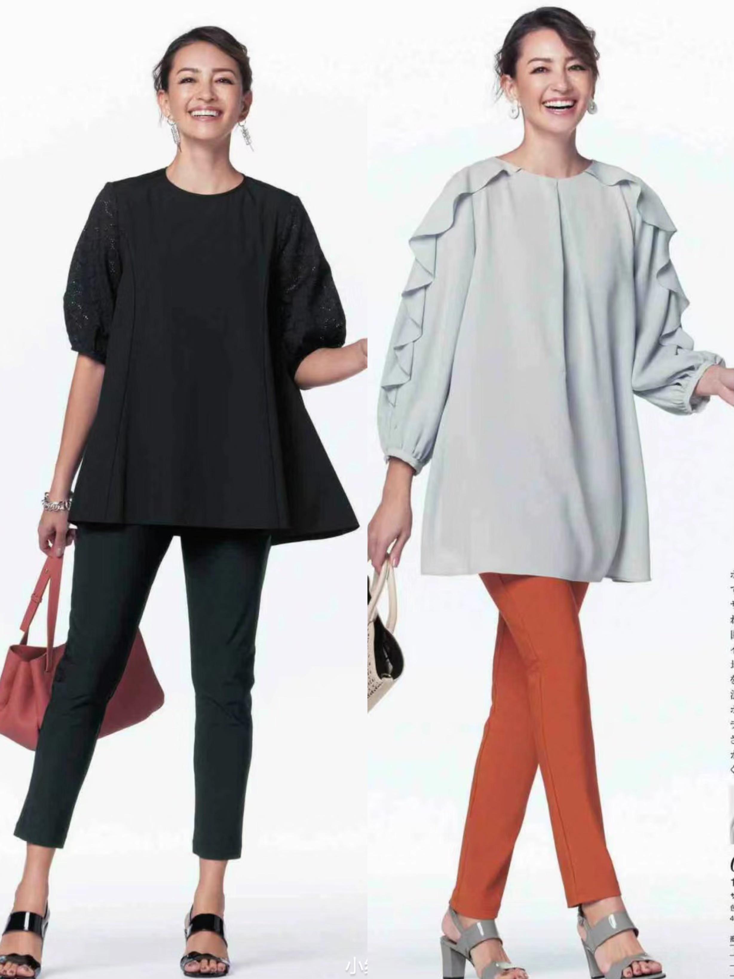 上松下緊的搭配,對於中年女性的身材具備了更強的包容性。寬鬆的襯衫,可以包容上半身的厚重感,搭配修身的直筒小白褲更加輕盈顯瘦。