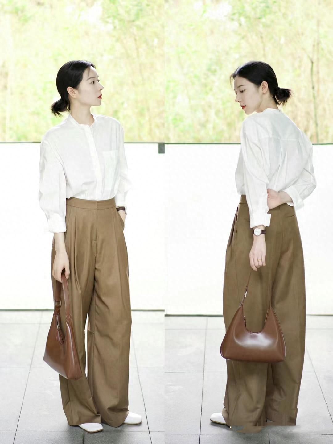 爲了表達出更加利落體面的美,我們可以將白襯衫的衣袖挽起來。塑造出七分袖的效果,這種白襯衫配西裝褲的搭配方式,高級體面還特別的顯貴。