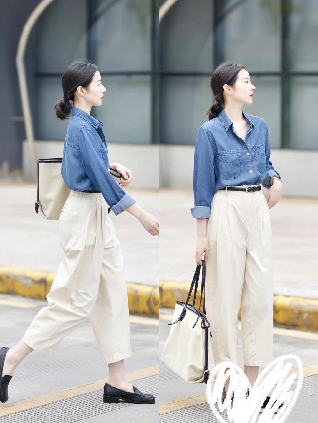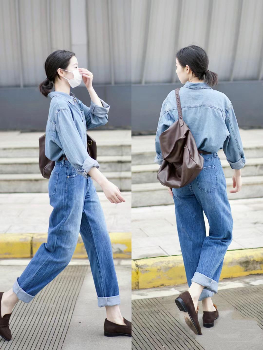 我們穿着牛仔襯衫的時候,儘量搭配軟牛仔的面料,舒適度更強。牛仔襯衫不僅可以搭配牛仔褲,還可以搭配九分褲。