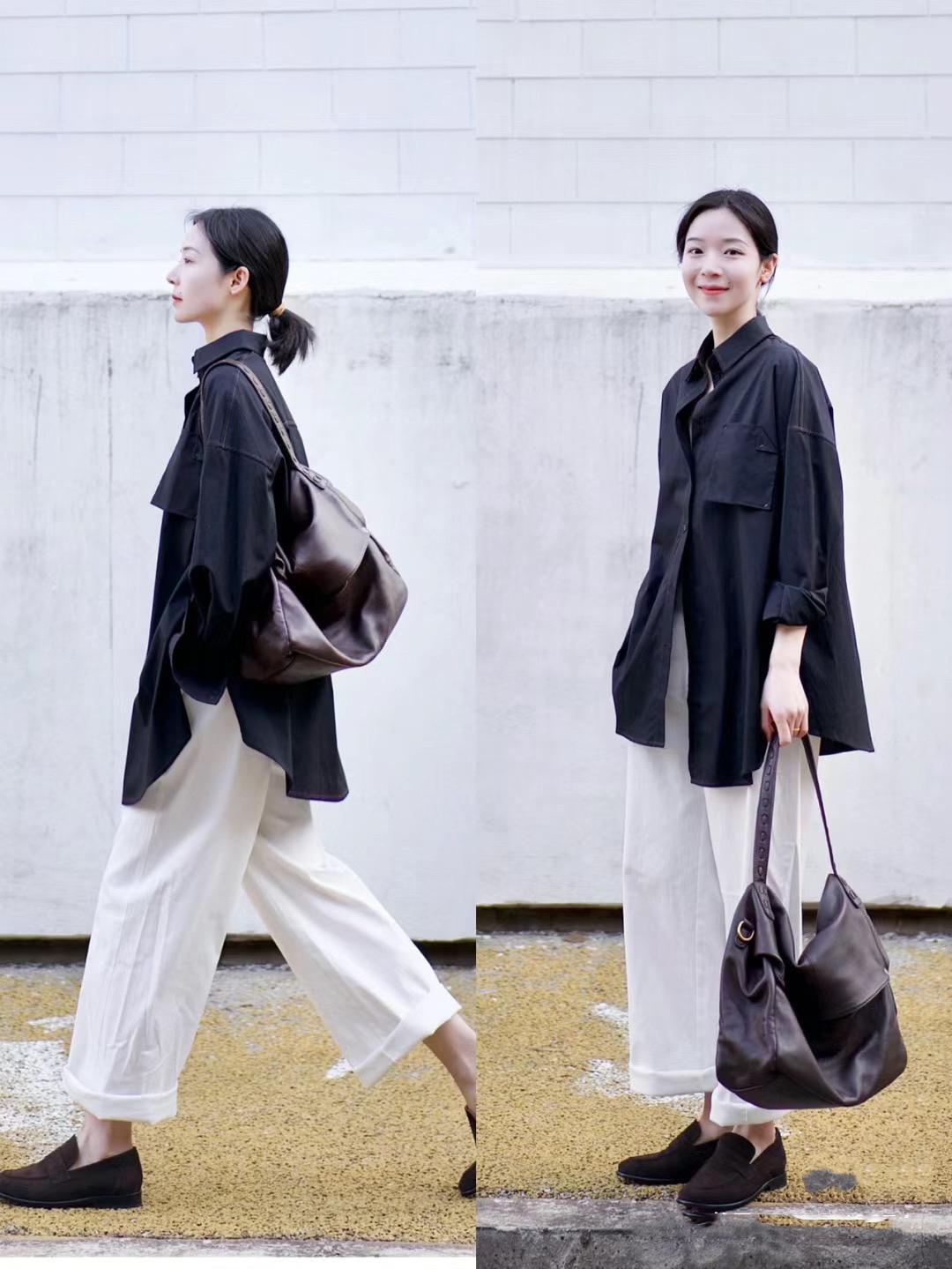 黑色襯衫自帶氣場,顯瘦效果也不錯。而且黑色襯衫的搭配非常簡單,隨意的配一條白色直筒褲,就乾淨大氣。黑色襯衫的搭配,也可以體面而高級。