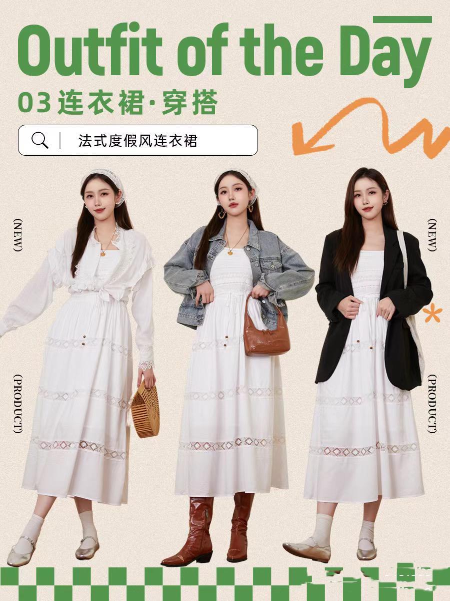 優雅的白色連衣裙,色彩醒目又更加提氣質。而且搭配上也非常容易,搭配我們上面提到的牛仔外套、或者黑色西服外套,都時髦大氣。