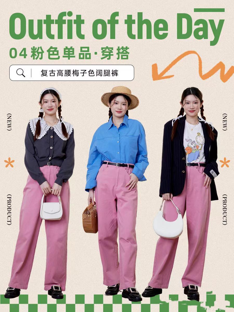 明亮的顏色放在下半身,遠離我們的臉部線條,就不會形成太過鮮明的對比,也不會顯的氣色暗淡。甜美粉的直筒褲,可以讓我們的穿搭更加醒目減齡,又不會顯的皮膚暗沉。