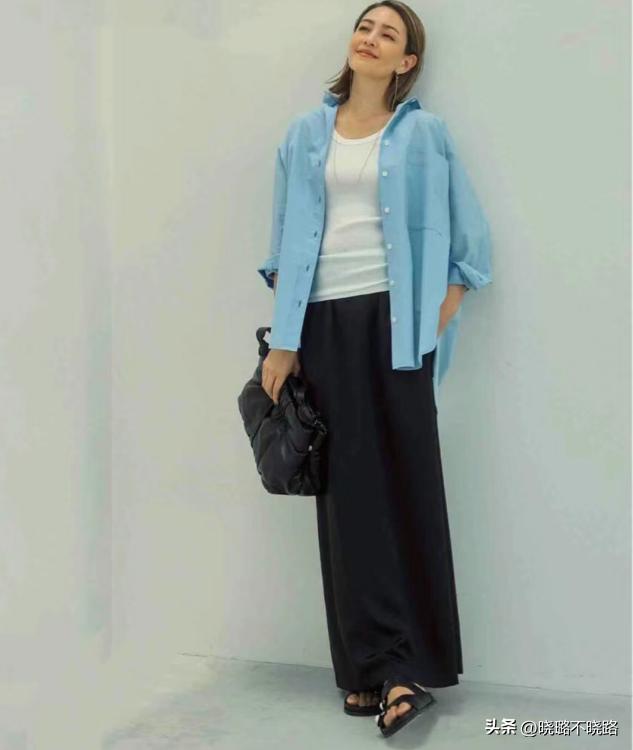 中年女人難免會面臨膚色暗黃,沒有精氣神的問題,所以不建議大家選擇過於浮誇豔麗的色彩,儘量選擇低飽和度的基礎款式襯衫,相互襯托之下,反而能夠提亮膚色。比如這種乾淨清爽的天藍色和薄荷綠色,能夠削弱黃皮膚的暗黃感,顯得人更加白淨。