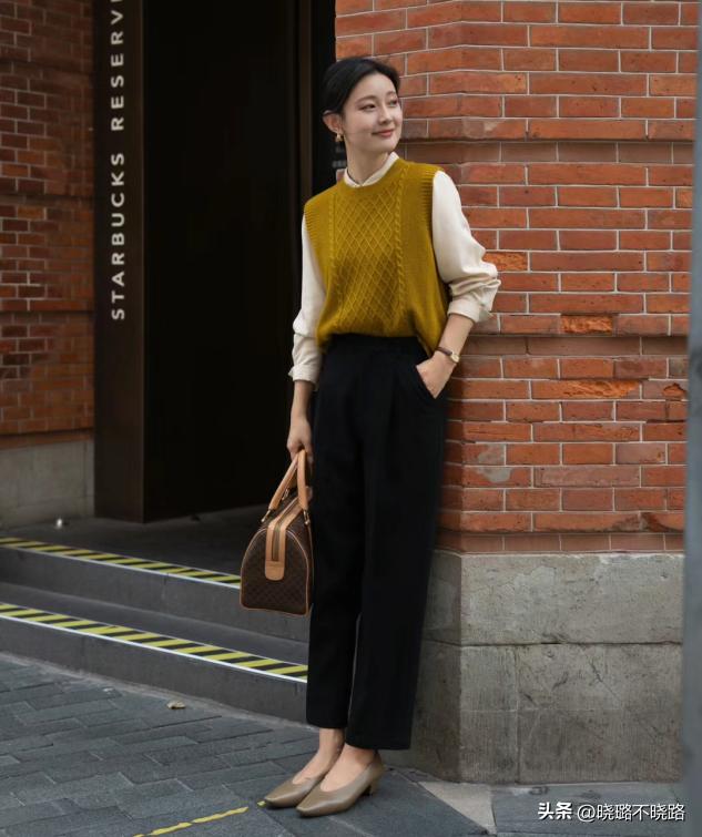 怕冷的姐妹也可以嘗試襯衫疊加馬甲這套組合,柔軟的針織馬甲,配上挺闊的襯衫,輕鬆的彰顯了層次,看起來格外的纖細。但是一定要選擇純色系列的襯衫,花紋和圖案太凌亂了反而破壞整體感。