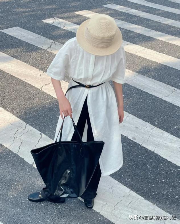 裙裝與褲裝的組合,我們就從最精簡的兩色配色進行入手,白色裙裝匹配黑色褲子,這是我們基礎配色的入手,對於色彩不夠敏感的女生也可以照抄作業,日常通勤造型也不出錯。