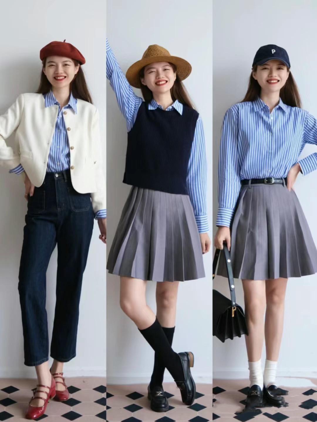 條紋打底衫配高腰的A字裙,穿起來簡單又高級。高腰的A字裙,是一種上窄下寬的設計,可以更好的包容梨形身材,顯得雙腿線條更加纖細輕盈。