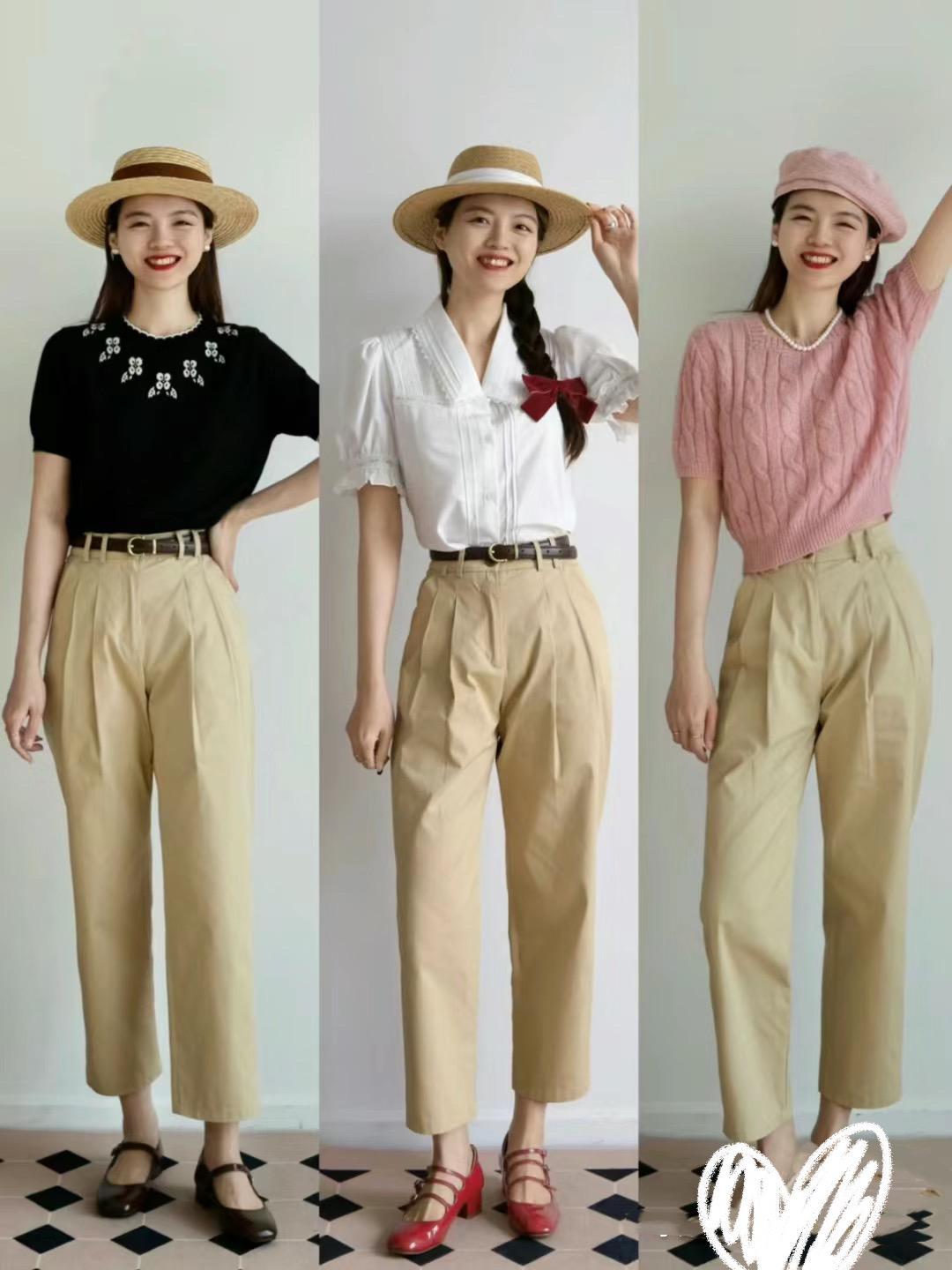 衣服穿得對、好看還顯瘦。對於梨形身材來講,上短下長的搭配、也是可以自然優化比例的關鍵。短款的襯衫、或者打底衫,配上高腰的哈倫褲,就能自然掩蓋臀部、腹部的厚重。