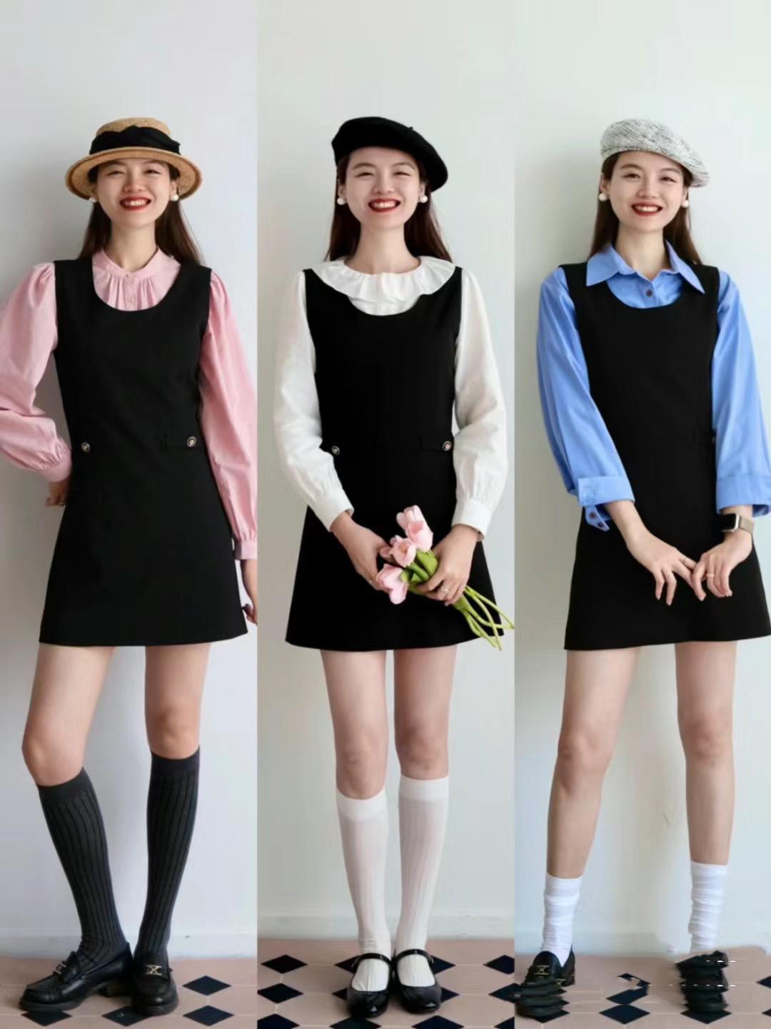 比如收腰效果比較明顯的黑色背心裙,裙襬是典型的A字形剪裁,就可以更自然的遮胯顯瘦。像這種黑色背心裙,配厚底的樂福鞋、或者瑪麗珍鞋穿着都很洋氣。