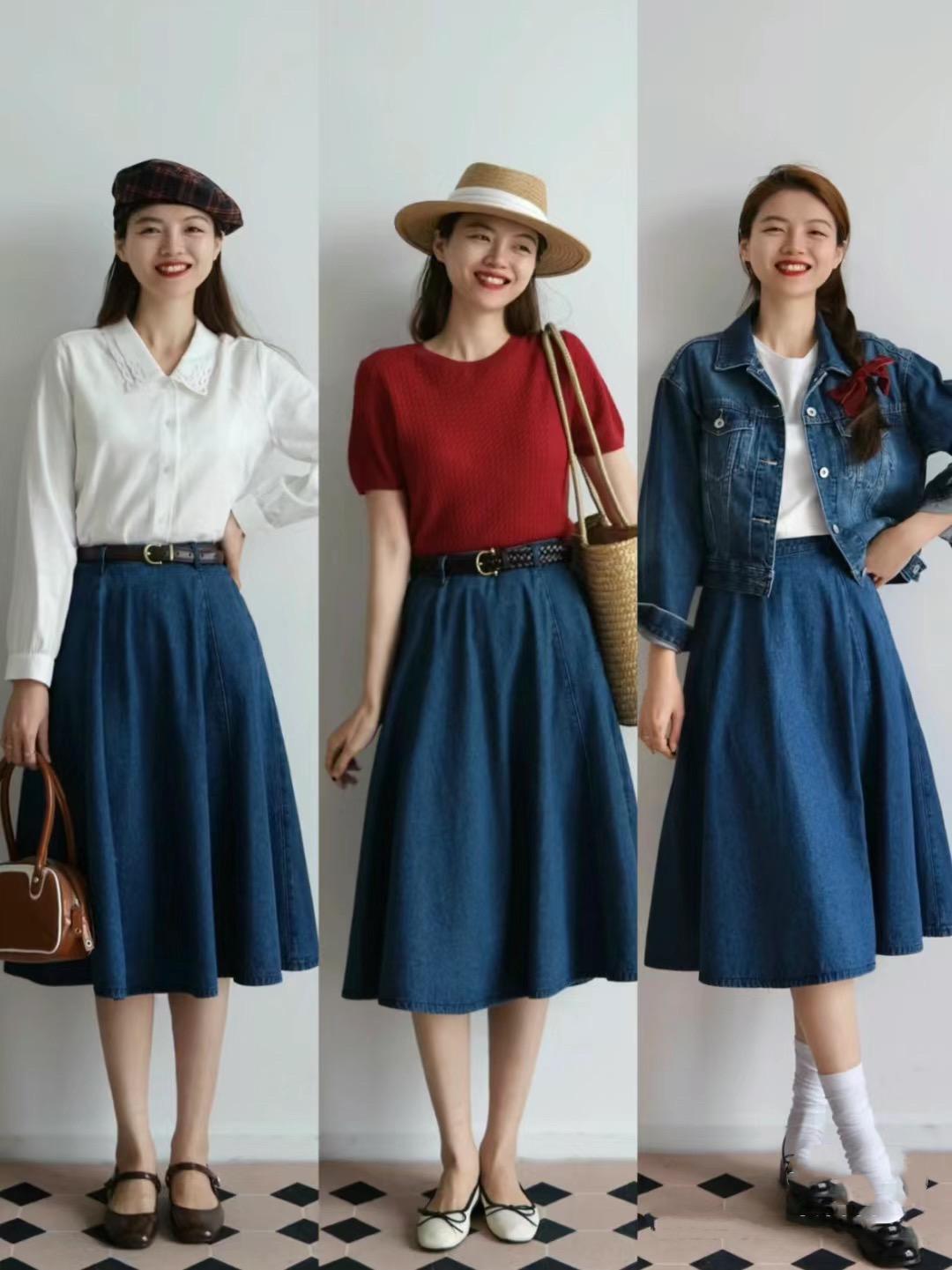 大量感的半身裙,不僅更加高級大氣、也有着更強的修飾性。高腰的牛仔半身裙、大量感的裙襬、形成了傘裙的效果,穿起來修飾性極強格外的顯瘦。