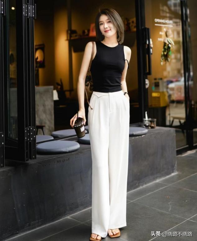 彩色系的上衣偏短款,越貼近面部,越容易顯白,黑色系的褲子優化腿型的輪廓,穿出寬窄拉扯感,也上檔次。