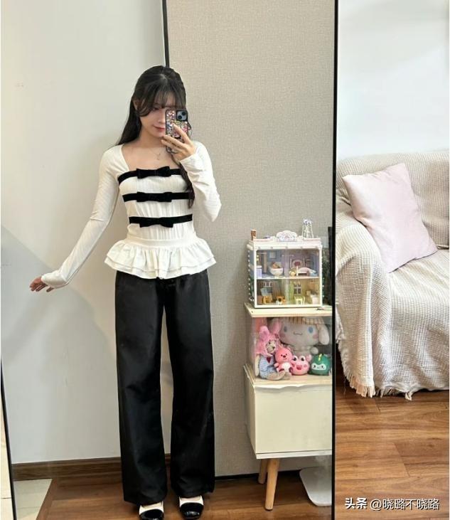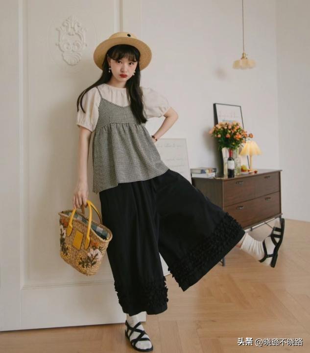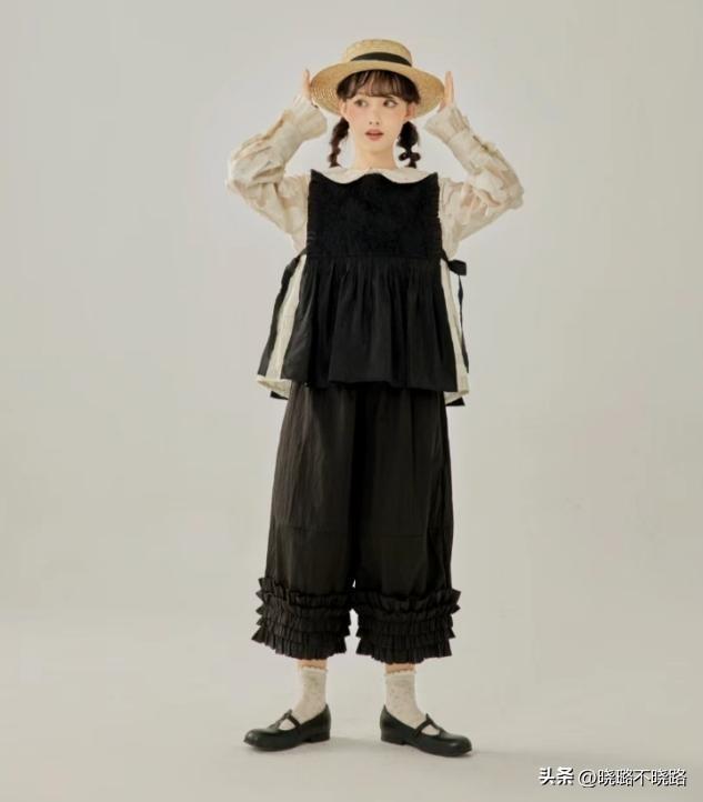 簡約色調的穿法纔是最容易上檔次的,比如黑白色系的銜接組合,可以運用在上衣和公主褲的對比當中,也可以運用在花邊與褲子面料的對比當中,總之,極簡的精緻兩色組合最容易提高穿衣的氛圍感。
