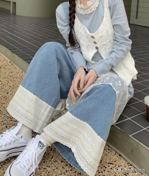 色彩的加持可以讓造型達到錦上添花的視覺效果,藍白配色可以運用在公主褲上,花邊選擇白色,褲子選擇牛仔藍色,實用性很強,日常穿搭不出錯。