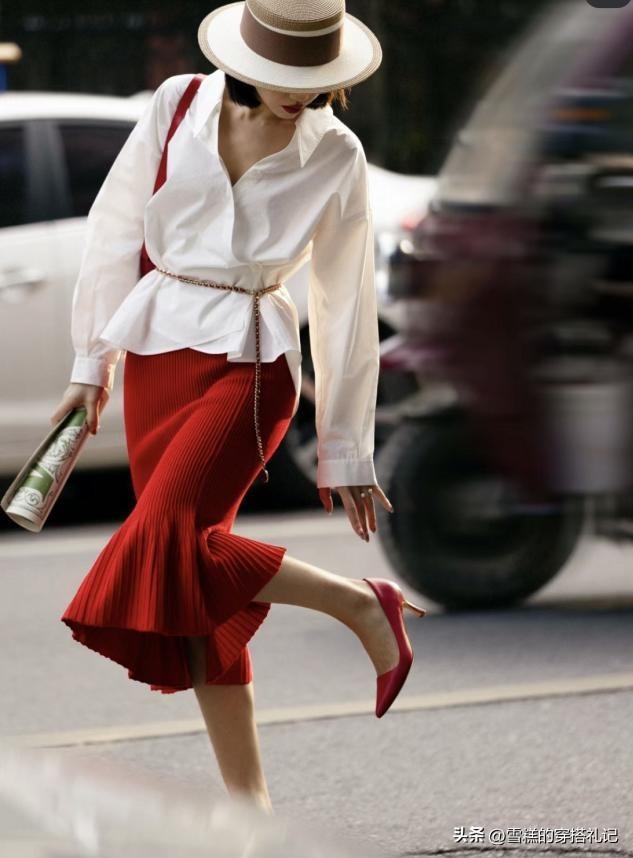 上下系列的穿搭白色以及下半身所搭配的彩色調還是要將上短下長的比例狀態完美的營造出來的,可以運用塞腰的穿搭又或者是直接將短款的上衣與高腰長款的下身單品進行結合,記得兩者都一定要是屬於簡約感的設計,最終的視覺纔可以襯托出來好的氣質狀態。
